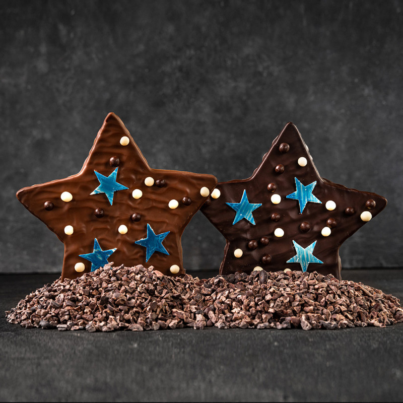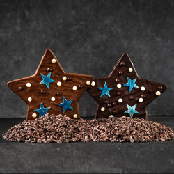 Étoile de Noël au praliné et feuilletine enrobé de chocolat noir ou lait